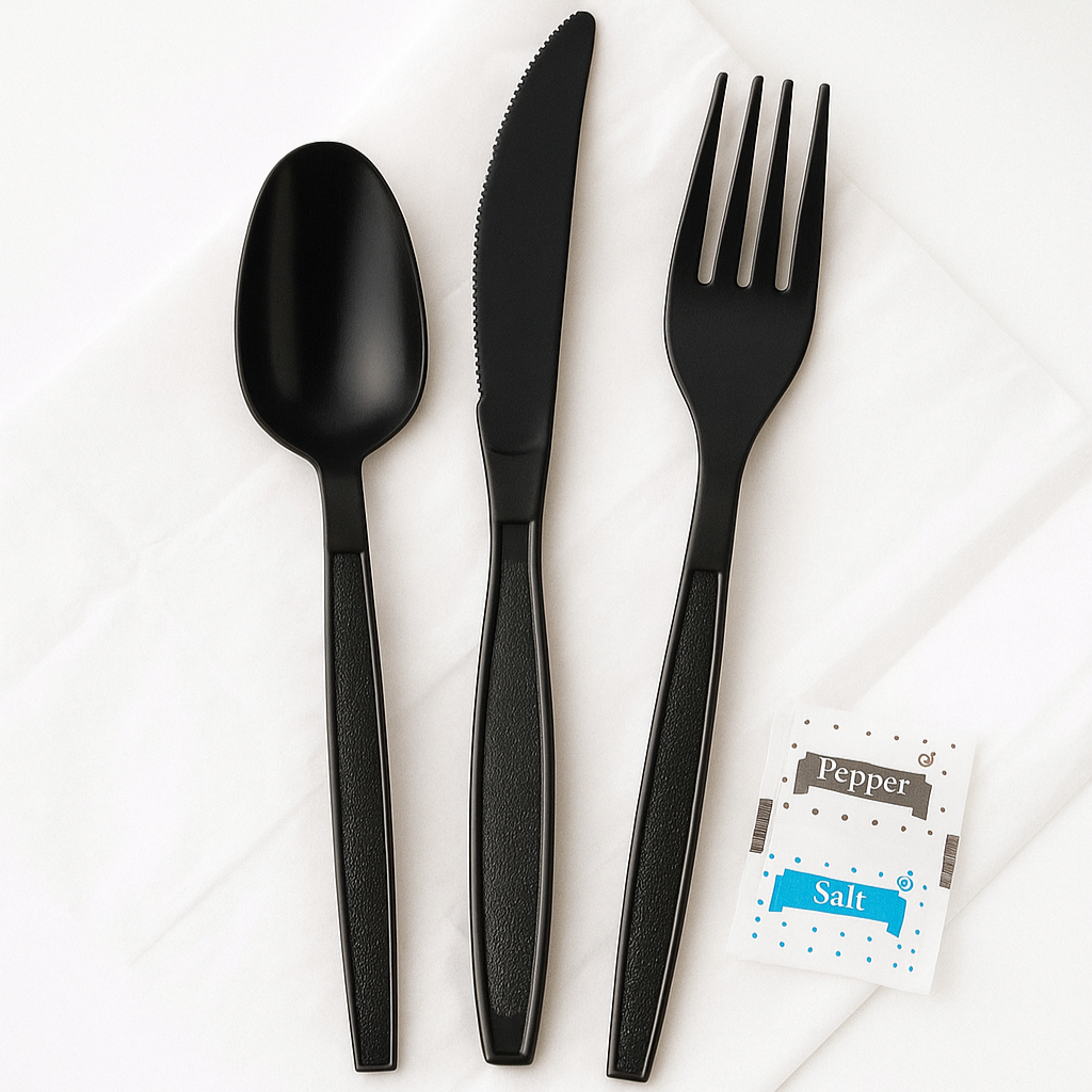 Individually Wrapped Disposable Cutlery Kit (Knife, Fork, Spoon + Napkin)